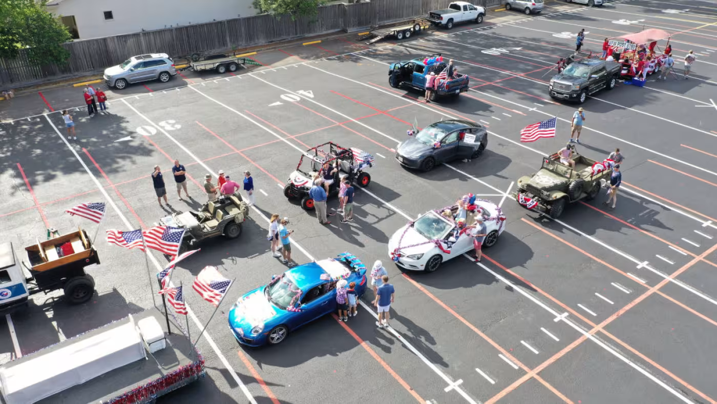 Drone footage of cars ready to roll in the Memorial Villages' parade. (Photo: Larry Boggus)