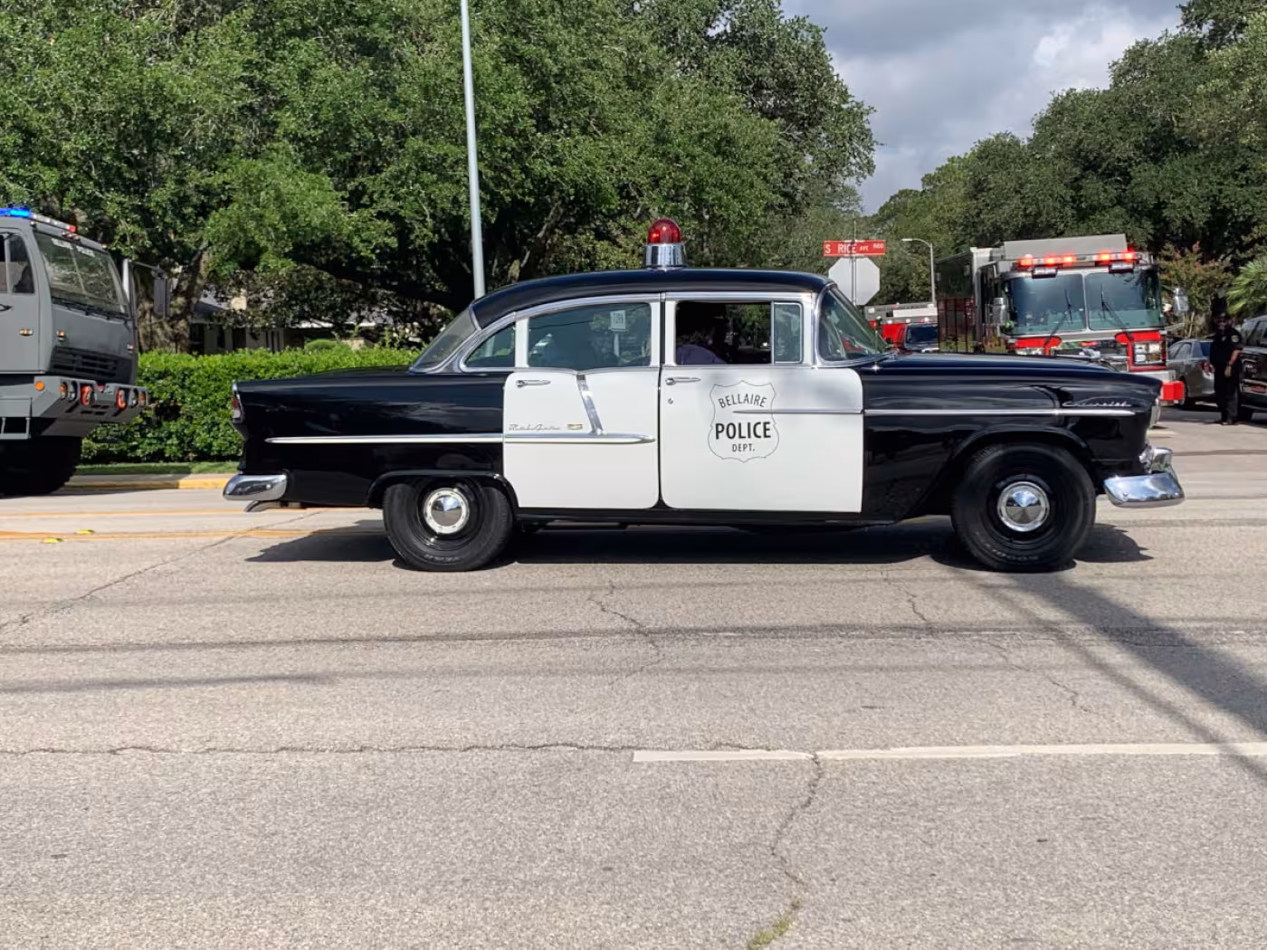 The vintage Bellaire police car receives cheers (Photo: Jordan Magaziner Steinfeld)