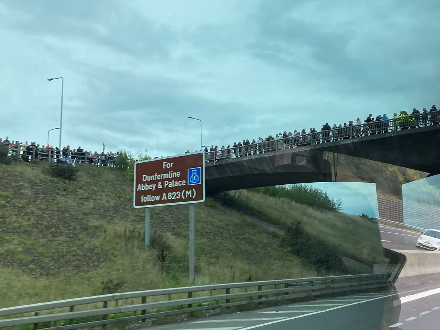 Incredibly, our itinerary coincided with that of the queen. We were in Edinburgh the day the caravan carrying her coffin made its way through the city to the Palace of Holyroodhouse, the official royal residence in Scotland. Along with thousands of others, we placed flowers outside Holyrood, and we stopped on the side of the highway from Edinburgh to St. Andrews to pay our respects to the queen and Princess Anne following behind.