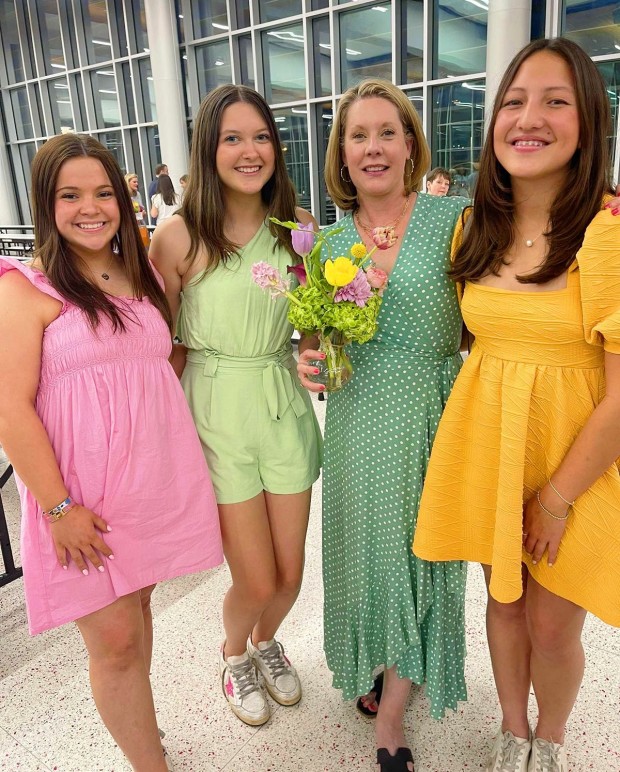 The current editors in chief and Ms. Hartman at the 2022-2023 yearbook banquet at the end of their first year officially on staff, where the name “dream team,” was coined.