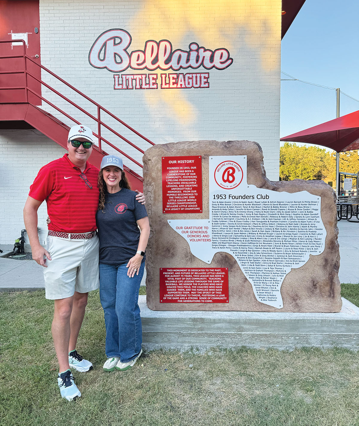 Bellaire Little League (BLL) president Sam Dagley and Jenny Dagley (pictured) were among the crowd on Weston Field for the unveiling of a monument honoring the newly formed BLL 1953 Club. The philanthropic group was created to honor the legacy and preserve the future of youth baseball in Bellaire. Hundreds of guests attended the ceremony, including city officials and BLL leadership. Named for the year BLL was founded, the 1953 Club aims to bring together former players, coaches, parents, and supporters to give back to the organization after their time on the field ends. What began as an effort to fill 53 founding-member spots quickly grew to 100 spots after an overwhelming response. The founding contributions will support enhancing and expanding BLL facilities, including a long-awaited sixth field at Lovett Elementary.