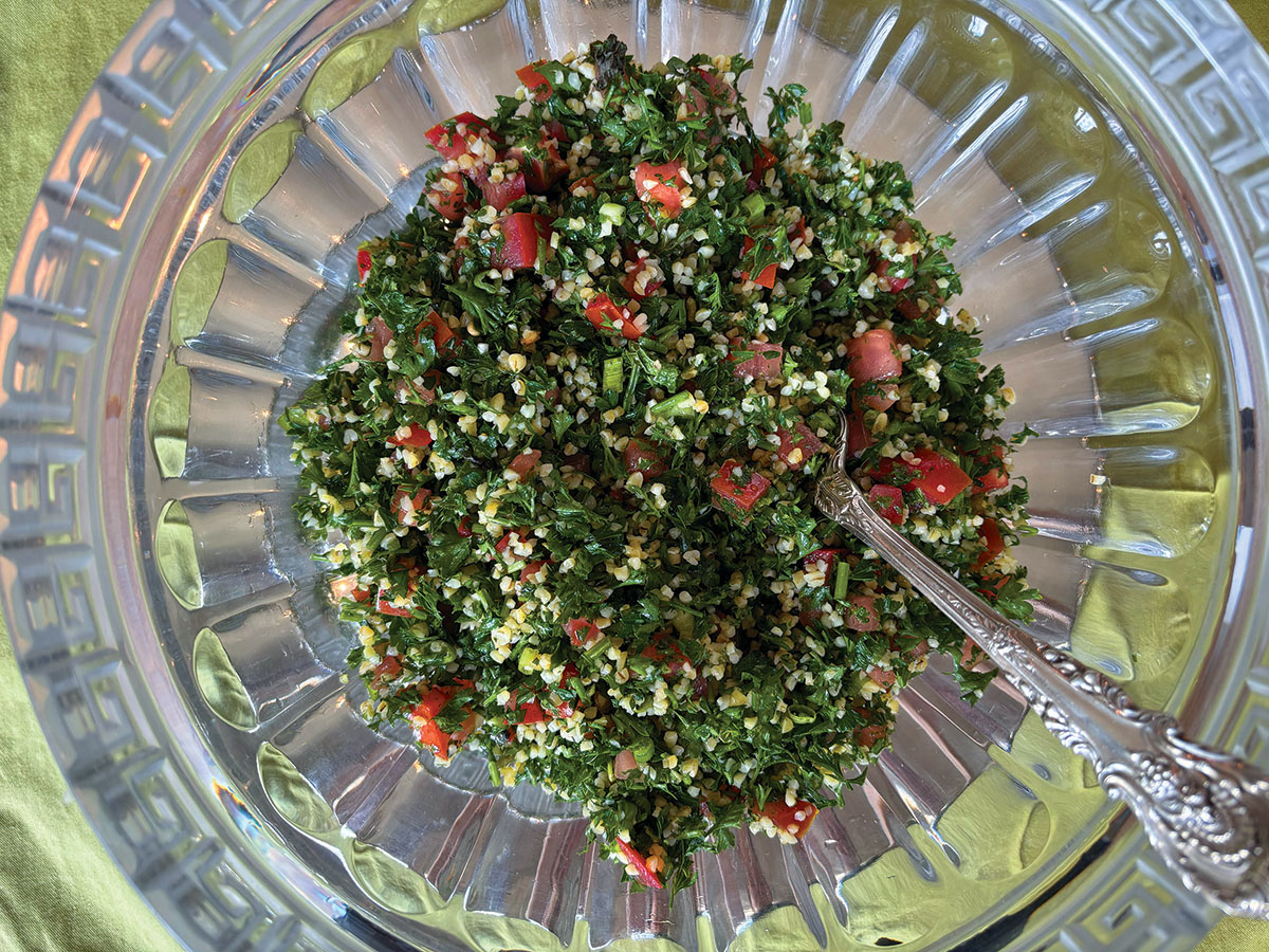 Tabouli might sound odd to serve on Thanksgiving, but it has been a staple at our holiday table for at least 30 years. Our dear friends-who-became-family Dr. and Mrs. Vogelpohl (Kris Anne and Elmer) are no longer with us, but when they were, we were lucky that they chose our house to celebrate the day. Every year, Mrs. Vogelpohl brought her famous tabouli, and its light, acidy crunch (thanks to tomatoes and lemon) became the annual foil to plates piled with turkey and dressing and sweet potatoes. If you’ve ever wanted a real Greek Orthodox grandmother’s recipe for tabouli, the kind you find at the Greek Festival and wish you could have all the time, this is it. The Vogelpohls’ daughter Libby Jacobson (also our extended family) shared her mom’s recipe with us.