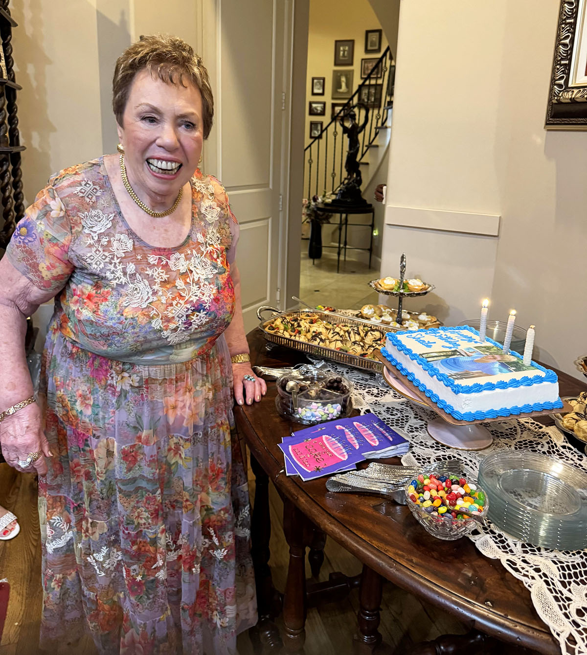 Homegrown hit. Sheila Train’s 85th birthday was celebrated at home with son Jordan Train, who joked his absent wife, who was out of town during the party, still “made it” – she appeared in the photo background on the cake. Grandson Adam Train, wife India, and their chihuahua Cookie added tributes before yours truly quizzed the crowd: parents’ names? how she met Louis (may he rest in peace)? dog names? Was one called Choo Choo? (Nope). Thirty guests sang “Happy Birthday” as Sheila blew out candles on a cake featuring – herself!