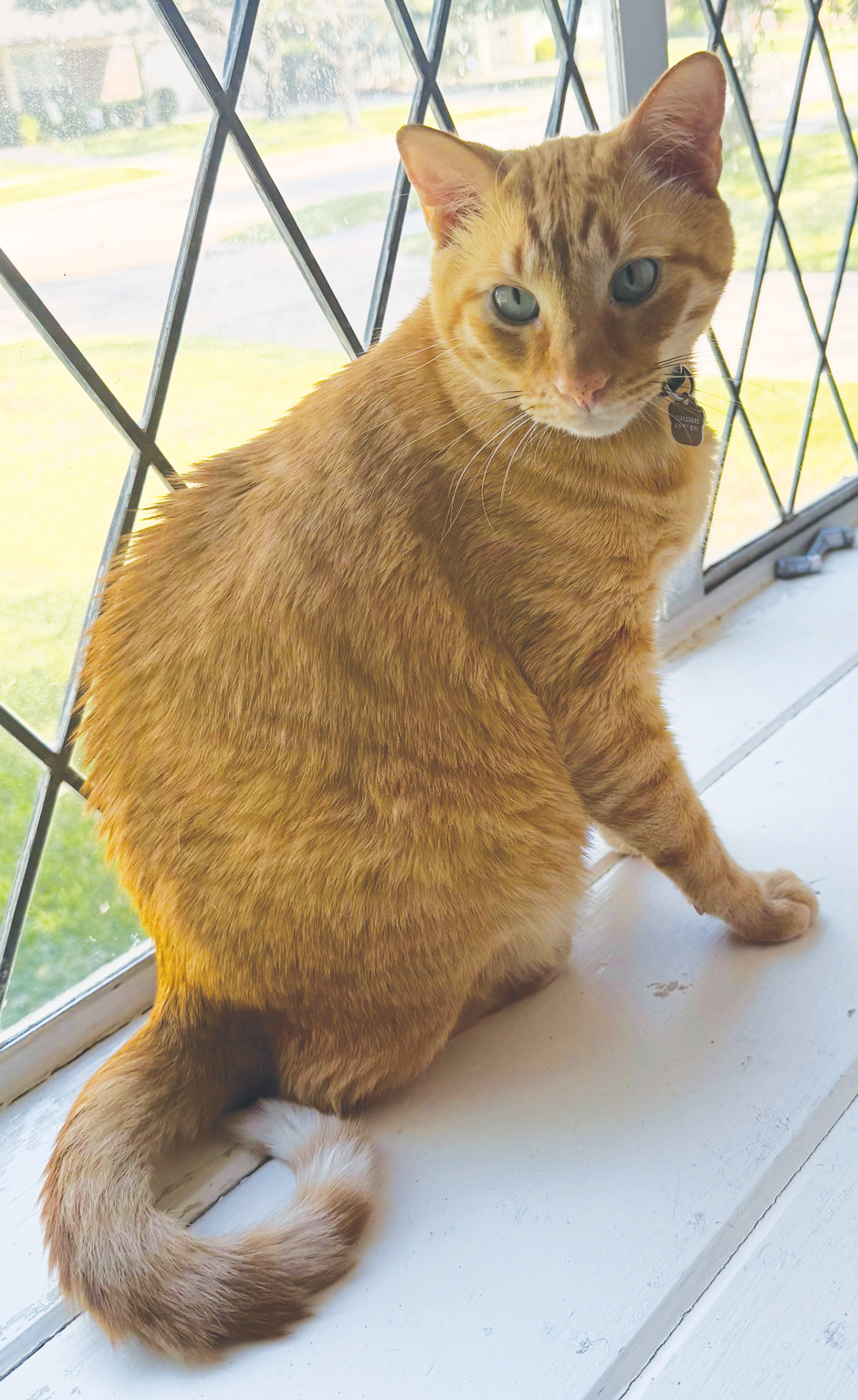 Hi! I’m Tamarindo, but you can call me Tam or Rindo. I am 39 in cat years. My family got me during Covid in a cat drive-thru at a pet shelter. I was scratching so much in the box in the car, and glad to get to my new home. I like to climb onto the window seat to watch squirrels and lizards. Every day I sit by a window to feel the sun’s light, and I meow at the sky if it’s raining or there isn’t any sun. I also spend my time wrestling with my cat brother Woodrow and sleeping near my owner’s laptop. My cat bunk bed that I share with my brother is fun too. I know I am the cutest, even though I meow every morning to ask for food. One last thing – Ezra, 8, (who gave me a hand in writing this, since my paws don’t jive with a computer) is the best. Meow!