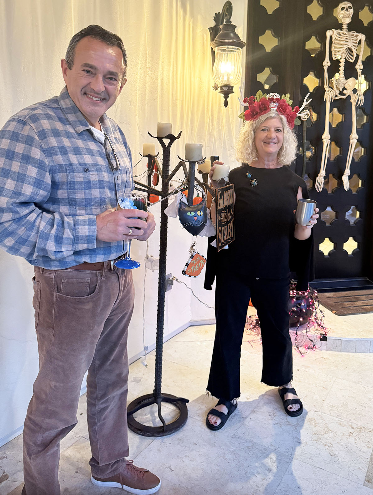 Frights, friends, and fancy gelato. John and Joni Zavitsanos once again proved that Halloween is best celebrated with costumes, cocktails, and a cauldron of Brazilian stew. Their annual bash mixed spooky spirit with serious flavor – hot dogs for the little goblins, plenty of wine and beer for the grown-ups, and a new star attraction: Constantino Artisan Gelato in decadent flavors like Crème Brûlée and Bananas Constantino. A front-yard bouncy house kept the kids airborne until the sugar kicked in. About fifty neighbors and friends showed up rocking Rocky Horror tees, neon shirts, and capes galore. Seen haunting the fun: Linda and Steve Schweitzer, Chris and Kathy Hollister, Juanita and Alex Leon, Natasha Becton, Tiana Shriver and Michael Bonderer, and Mary and Jim Gosnell – no tricks, just treats (and maybe seconds of gelato).