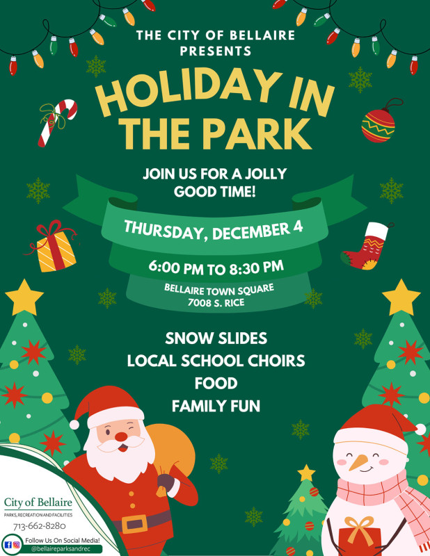 Snow is forecast for a festive evening in Bellaire, including music from local choirs, food, and family fun.
