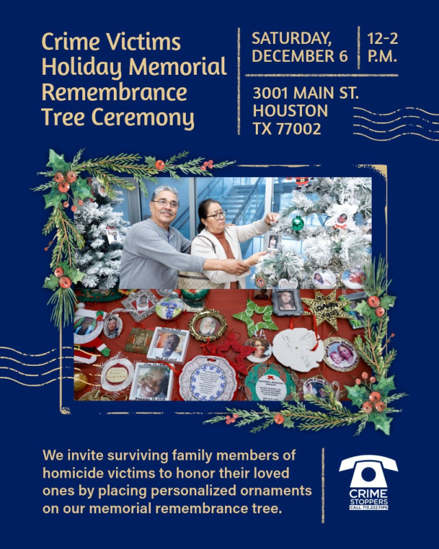Join Crime Stoppers of Houston on Dec. 6 from 12-2 p.m. for a heartfelt gathering at their Crime Stoppers headquarters. This annual event provides a peaceful space for families and friends of crime victims to honor their loved ones. As the holiday season can be an especially difficult time for those coping with loss, the event offers comfort, solidarity, and a supportive community.
